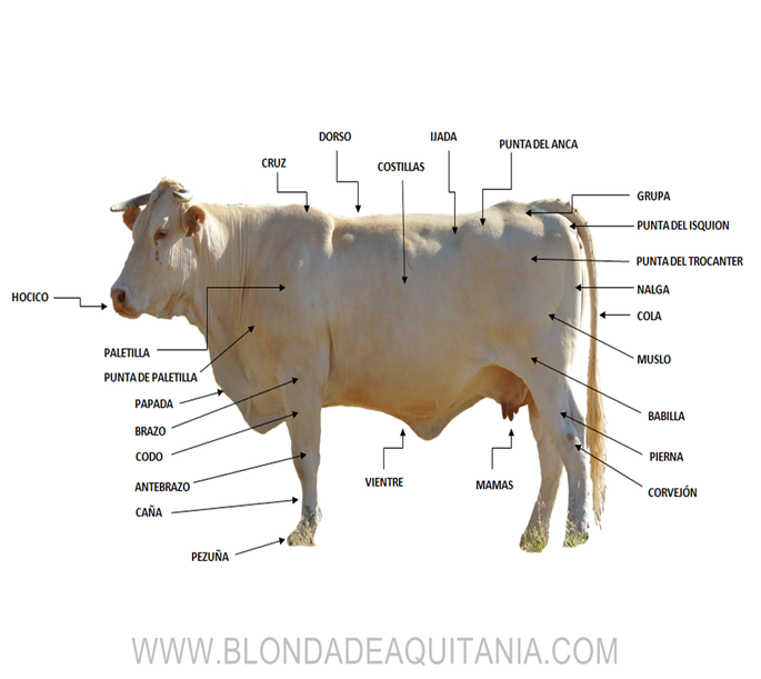La vaca, en el caso de la hembra, o toro en el caso del macho. El nombre científico es el que se le asignó al animal vacuno doméstico europeo y norasiático,. Se trata de un mamífero rumiante grande y de cuerpo robusto, con unos 120-150 cm de altura y 600-800 kg de peso medio. La alimentación de las vacas en general es hierba y agua y mientras lo hacen pueden ver permanentemente el horizonte.